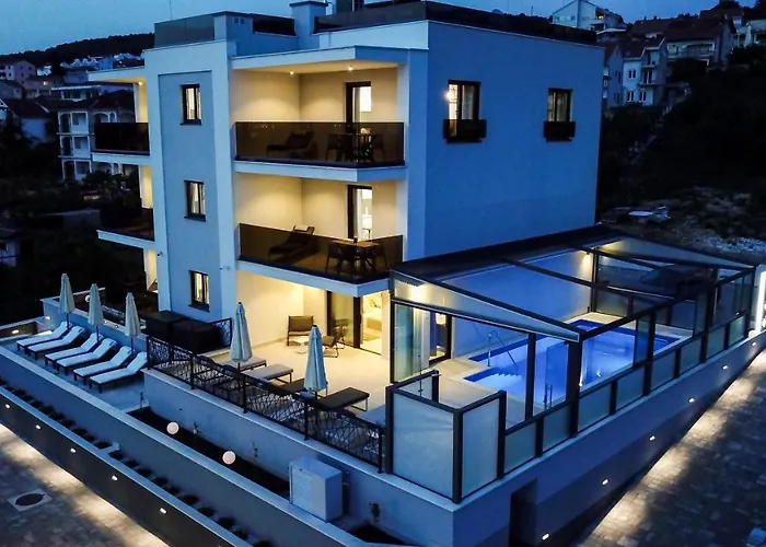 Situado a alrededor de 100 metros de Copacabana, este apartamento frente a la playa, Villa 23 A Heated Pool, ofrece comodidades modernas como Wi-Fi y servicios esenciales como un aparcamiento privado gratuito. Este apartamento está situado a una distancia de 3 km del Sitio Histórico de Trogir y a 5 minutos en coche del Cippiko Palace.